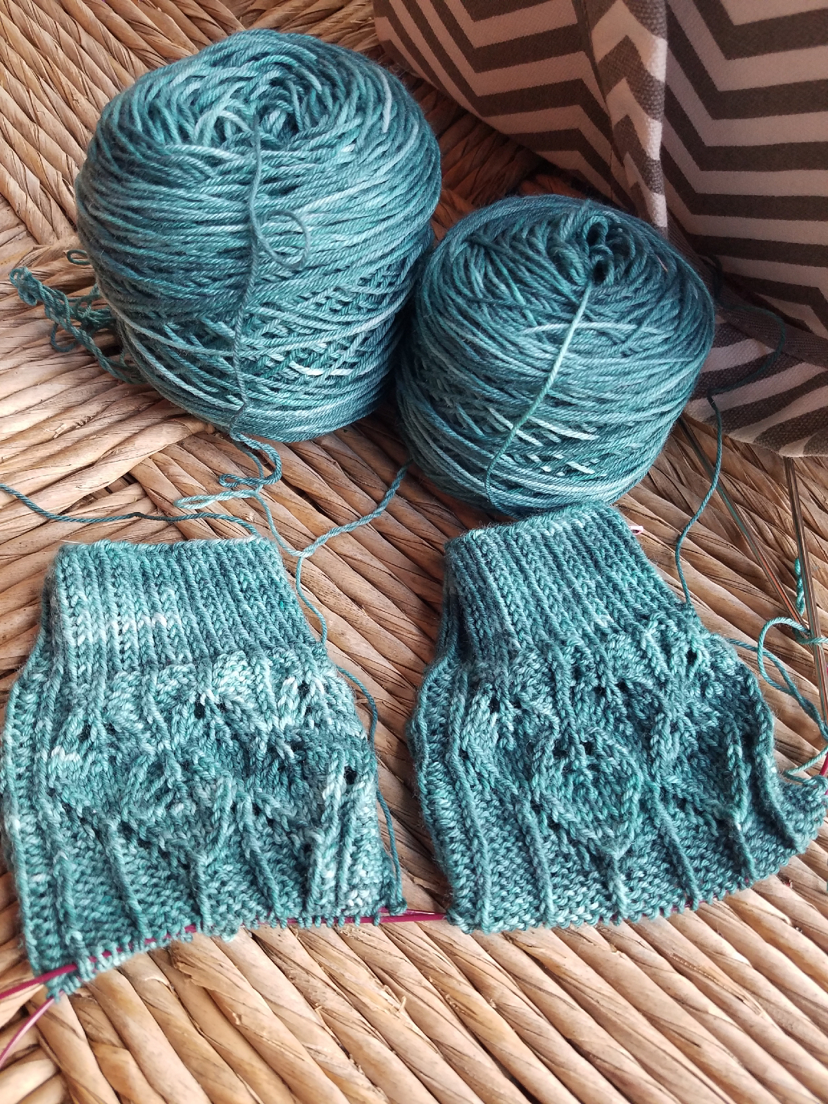 Green Gables, the second sock of Lisa Ross' KAL, has me totally smitten. I think this was the one of the four patterns I was most excited about, and so far it hasn't disappointed. I don't do much lace knitting, but this was a manageable amount in a fairly intuitive pattern. I've lost some momentum now that I'm onto the fairly plain leg/foot, but I'm still really enjoying them.